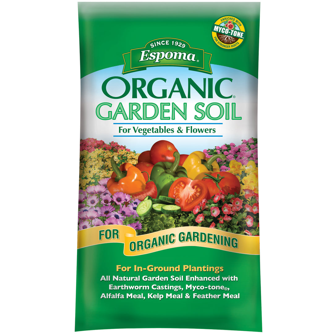 Espoma Organic Vegetable & Flower Garden Soil is the ultimate planting mix to use for all your vegetables and flowers.  It contains a rich blend of the finest natural ingredients and is enhanced with earthworm castings, feather meal, alfalfa meal, kelp meal, yucca extract and a proprietary blend of mycorrhizae to ensure your plants grow deeper roots, greener foliage and more beautiful blooms.