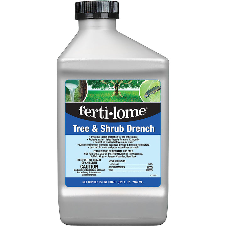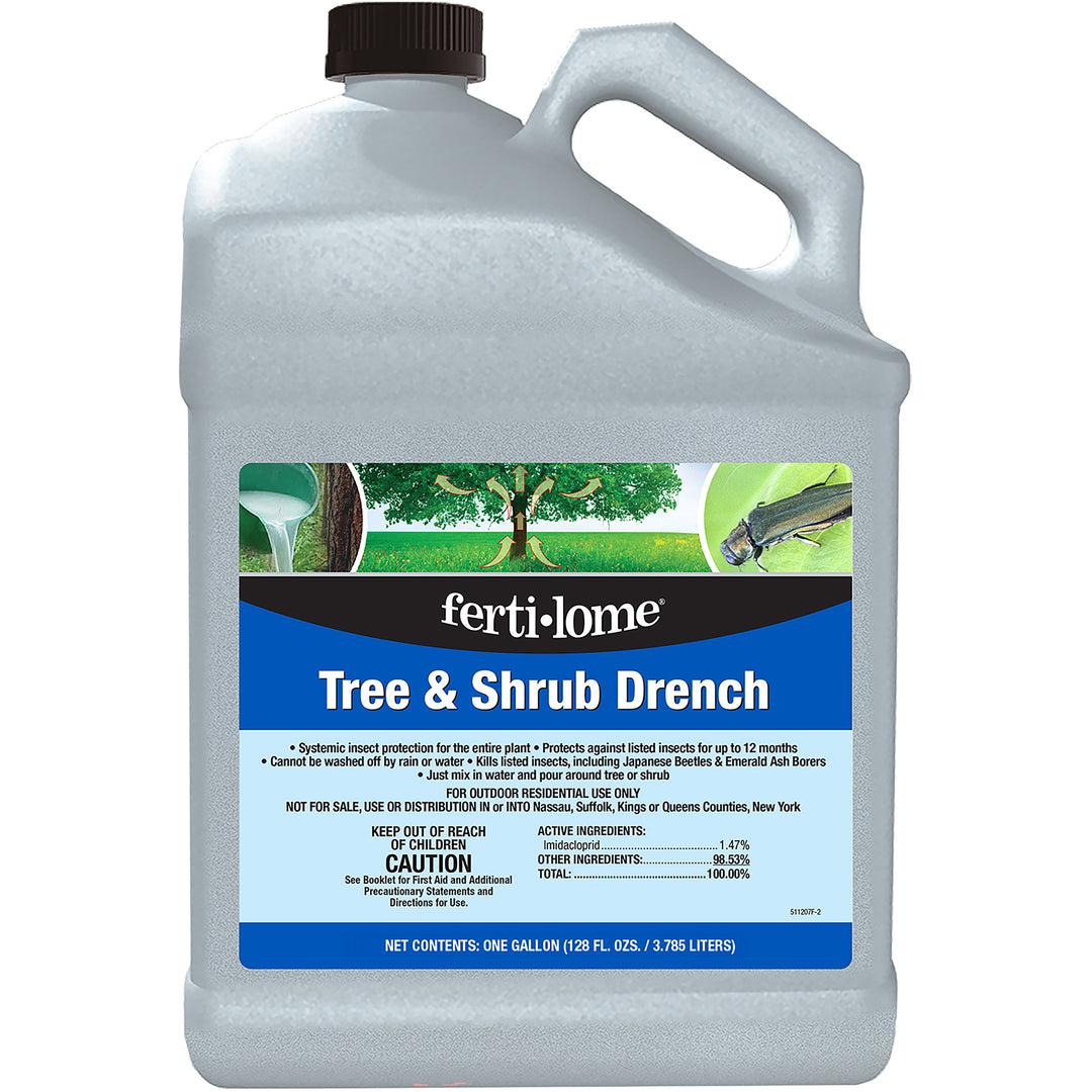 ferti·lome® Tree & Shrub Drench Concentrate is a powerful insecticide formulated with Imidacloprid 1.47% to control a wide range of insect pests in trees and shrubs. It effectively targets and eliminates pests such as aphids, billbugs, crane fly larvae, leafhoppers, leafminers, borers (round headed, flatheaded, and long horned), pine tip moth larvae, royal palm bugs, scale, psyllids, and more.
