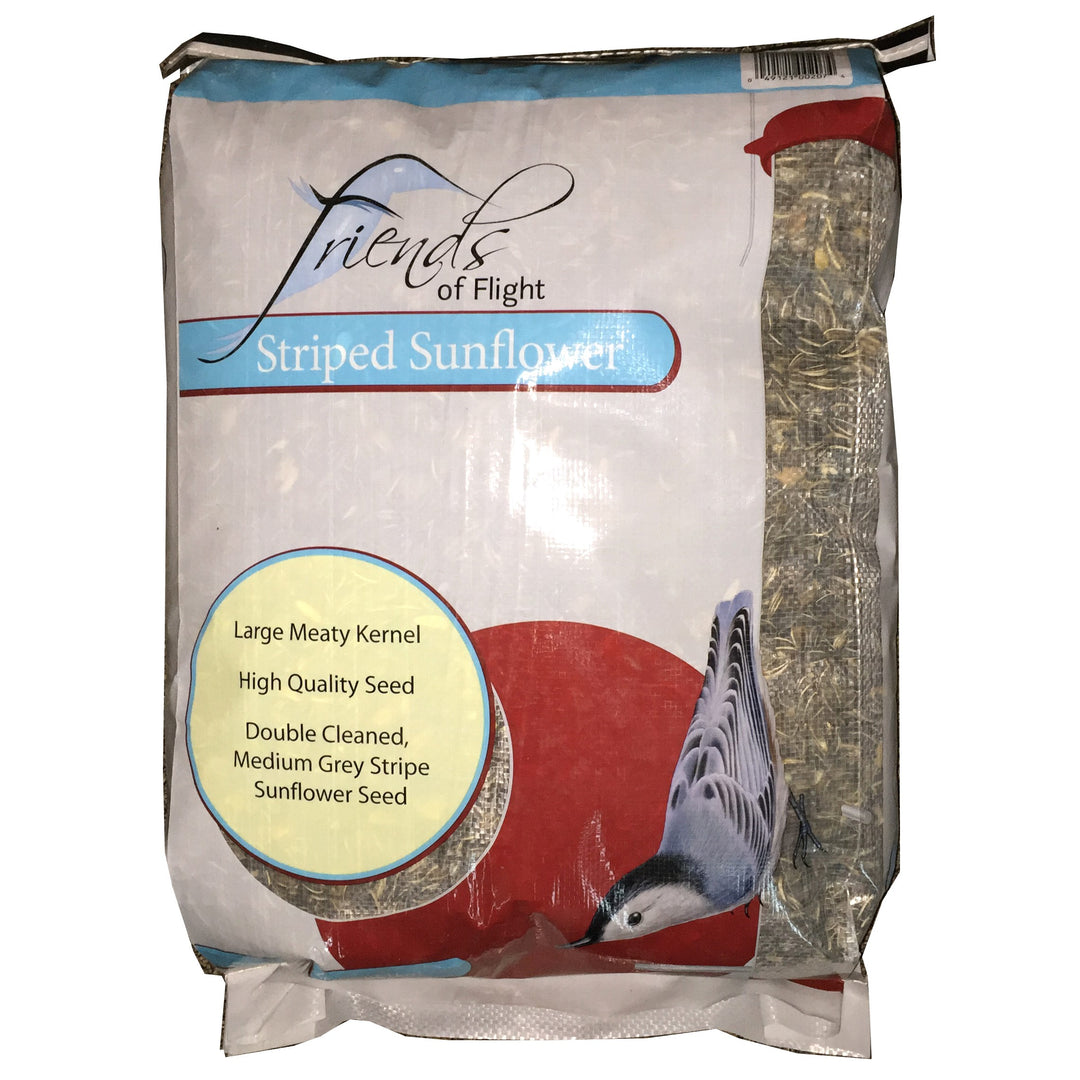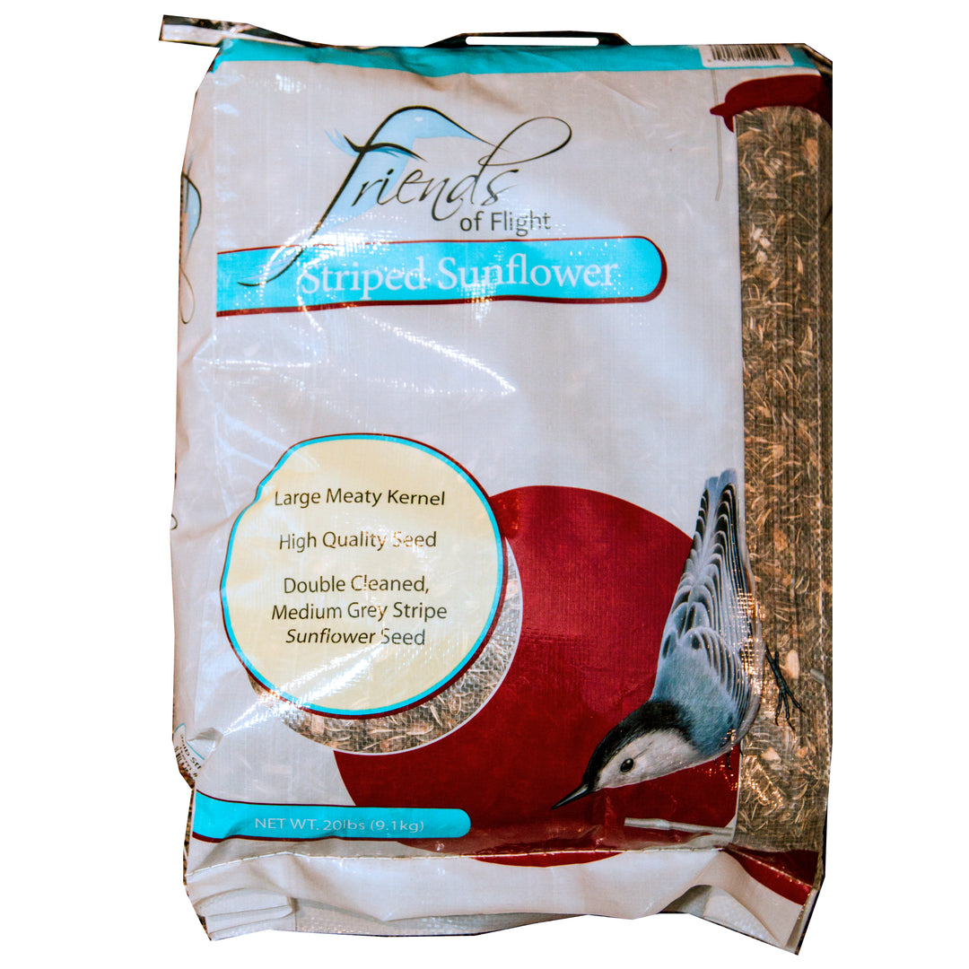 Friends of Flight® Striped Sunflower Seed is designed to attract and nourish a variety of backyard birds with its large, hearty kernels and superior quality. Carefully double-cleaned to ensure each seed is fresh and free from debris, this medium grey-striped sunflower seed offers a high-protein, nutritious option that many birds find irresistible. The larger size of these seeds makes them especially popular with cardinals, woodpeckers, jays, and other larger songbirds that prefer a more substantial seed.