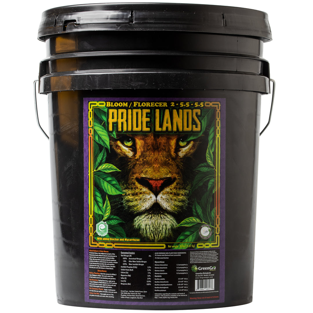Pride Lands Bloom combines turn of the century dry amendment farming techniques, Native American agriculture, and progressive microbe technologies. This dry fertilizer is a complete bloom food that includes good micro and macronutrients along with a healthy PK boost. The formula can be used as a stand-alone bloom food or in conjunction with the Pride Lands Flower Finisher additive.