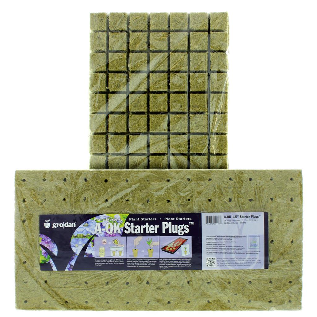 Grodan A-OK Starter Plugs are designed for starting seedlings and rooting stem cuttings. The finely woven stone wool in the Starter Plug provides the perfect environment for young roots. Square plugs form a sheet that fits standard 10 by 20 trays, with tapered bottoms that support transplanting and promote uniform root development.