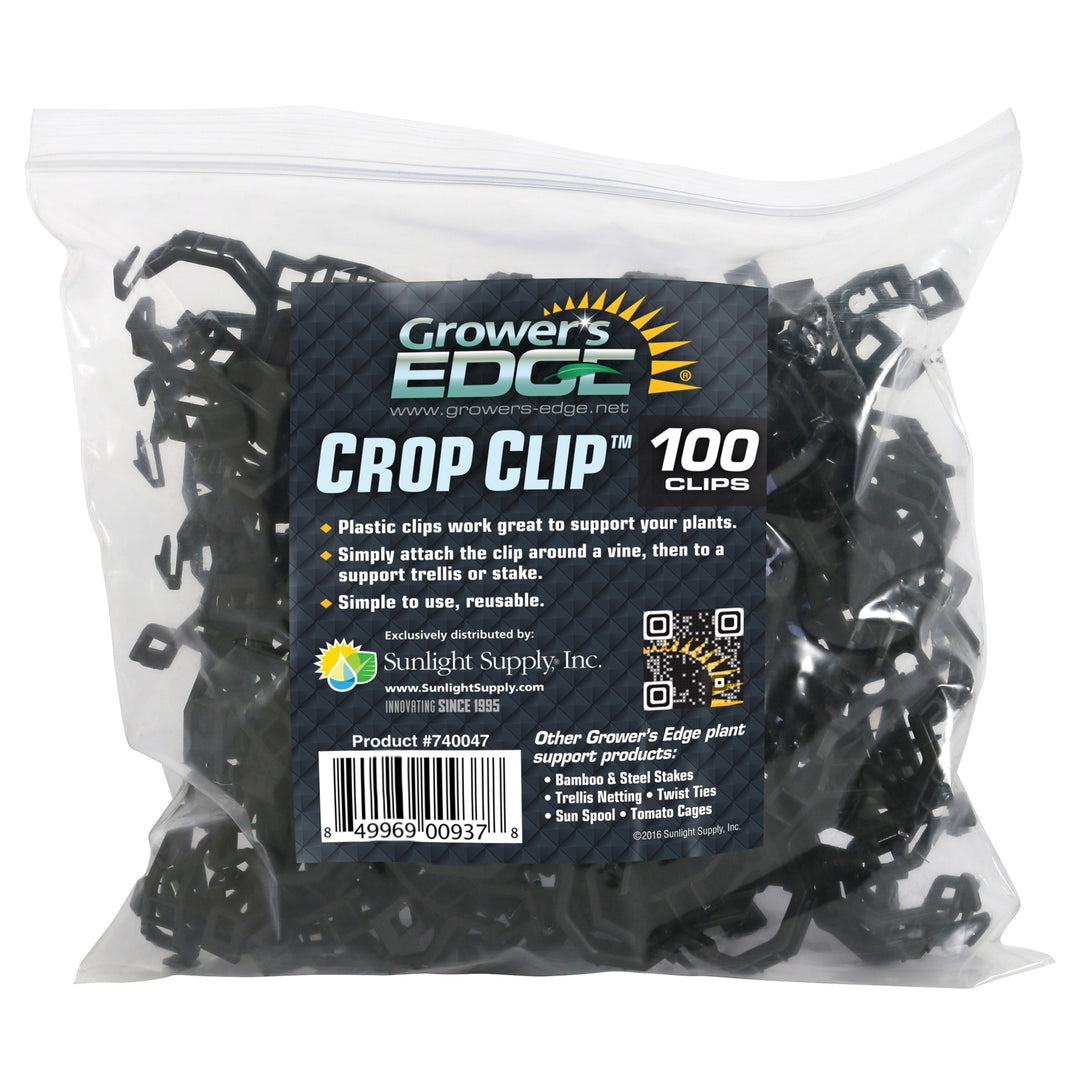Grower's Edge® Black Crop Clip® provides sturdy support for your plants as they grow. Made from durable black plastic, these plant support clips are designed to easily attach around plant vines and connect to a support system like stakes or trellises. They're simple to use and fully reusable, making them a practical choice for plant care.