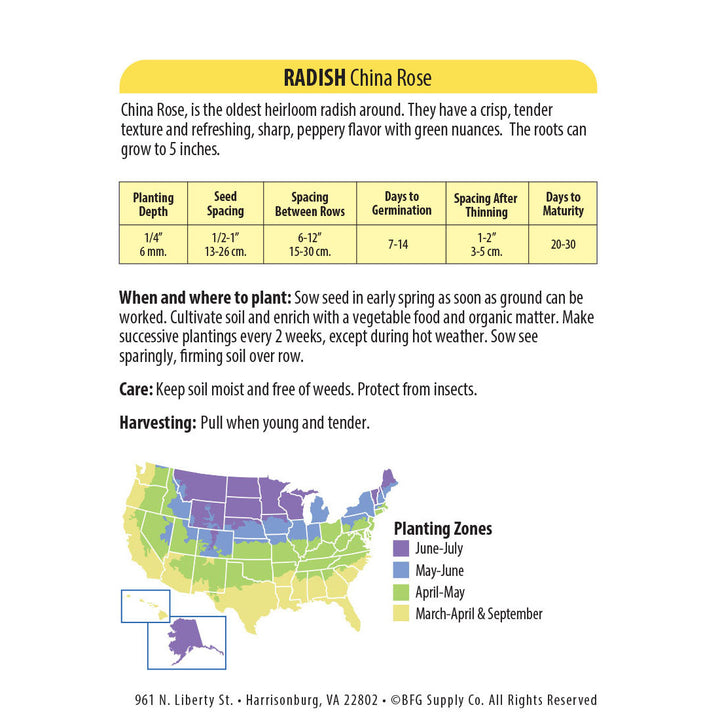 Unique fall-winter Daikon type radish that is very hardy. The root resemble a carrot and can reach up to eight inches long with white, firm and crisp flesh that has a peppery spicy flavor. Excellent storage characteristics.