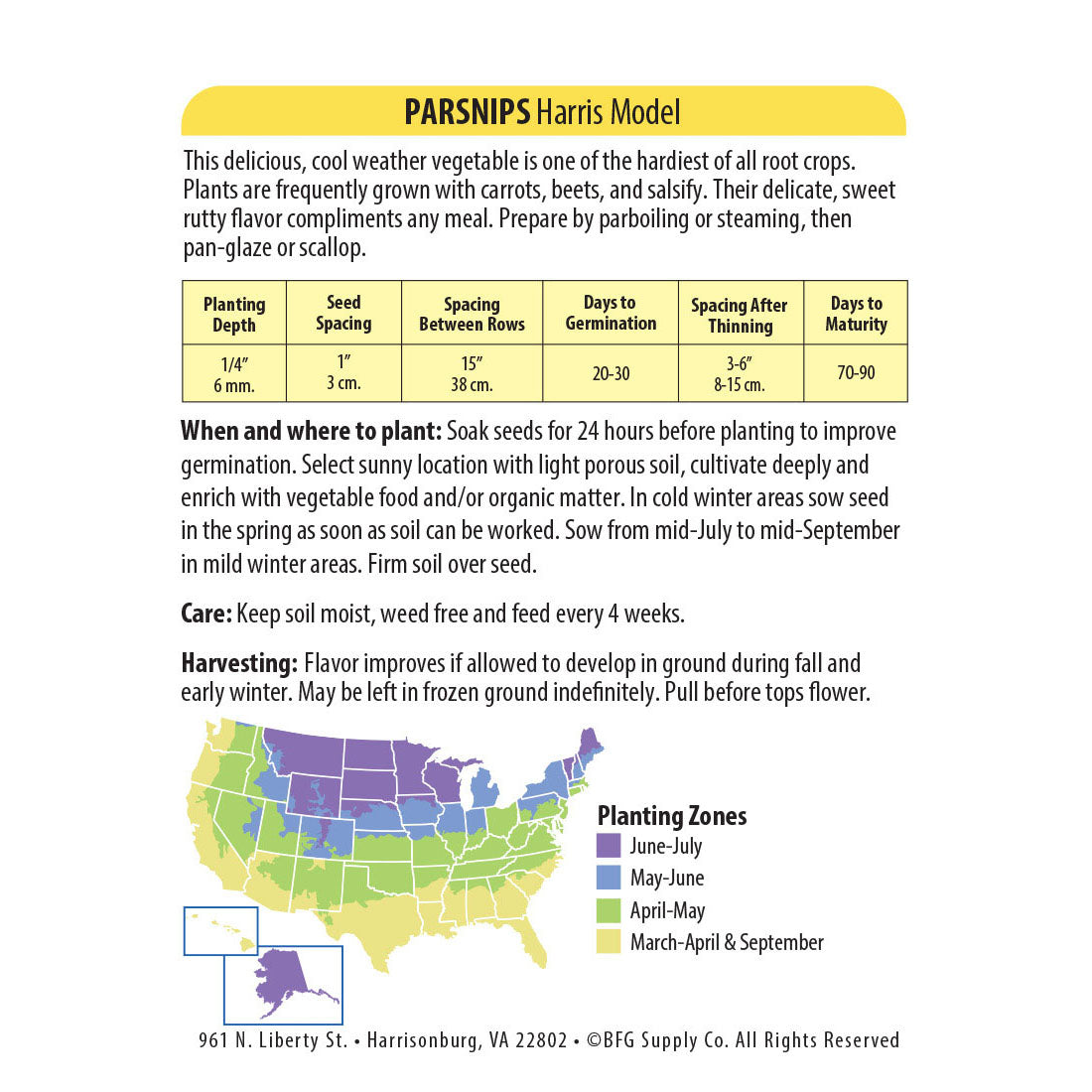 A root vegetable related to the carrot. This variety has a straight, long, slim shape, smooth skin and does not produce many side shoots, making them easy to harvest. The flesh is tender and fine grained with a sweetish-nutty, buttery, slightly spicy, sweet flavor. Can be substituted for carrots in many recipes. Also great boiled, fried, peeled and mashed like a potato or grated into salads.