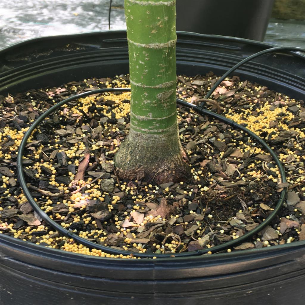The Pressure Compensated Dribble Ring is a simple, effective way to evenly water a large pot or container. The 4" diameter, low-profile tube consistently releases water at 2 gph, ensuring a well-watered, but not overwatered, plant.