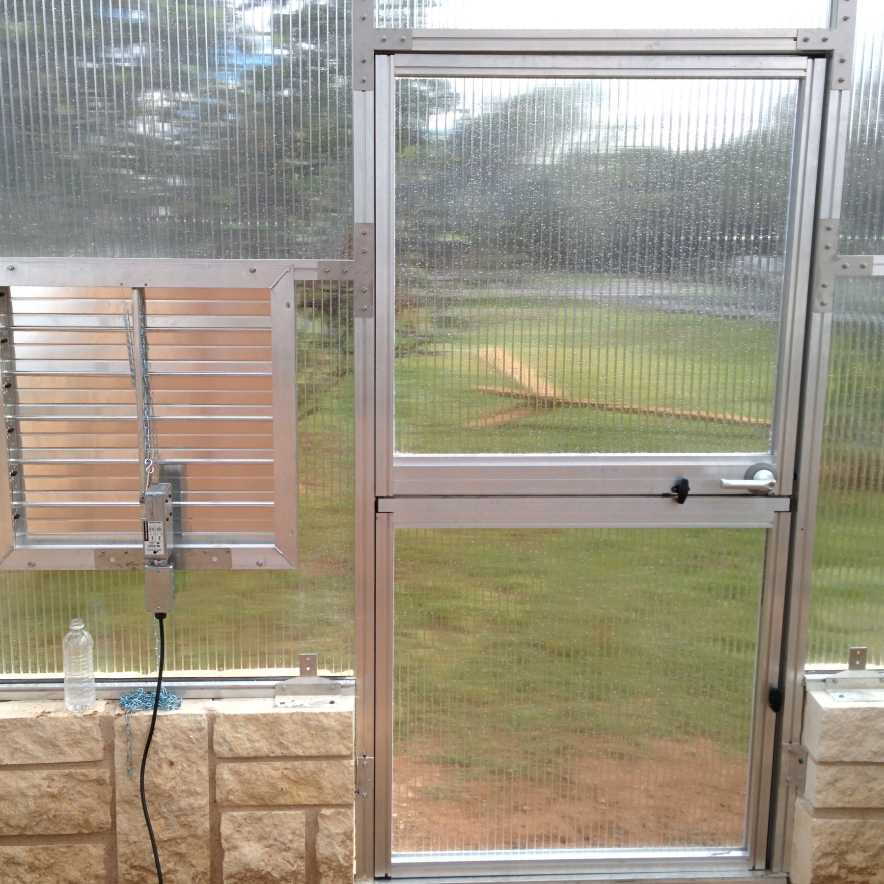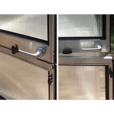 For convenience and accessibility, the Riga greenhouse includes an extra-wide 37.5" heavy-duty Dutch door with a keyed lock, providing ample space for a wheelbarrow to pass through. The structure also features extra-wide automated roof windows measuring 37.5" x 39.5", along with an oversized 30" x 41" gable end window, all designed to maximize natural ventilation and maintain optimal growing conditions.