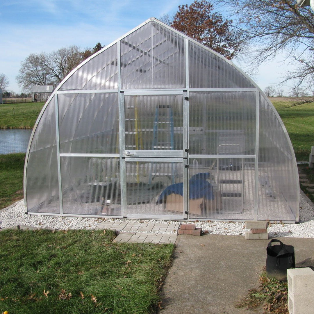 Featuring the thickest twin-wall polycarbonate available in a backyard greenhouse, the Riga offers the highest R-value of any hobby greenhouse on the market. This exceptional insulation makes the Riga more energy-efficient and less expensive to heat, keeping plants protected even in colder months. Most hobby greenhouses today use 4mm or 6mm polycarbonate, but the Riga is built with 16mm triple-wall polycarbonate, significantly enhancing insulation. The unique "onion" shape of the structure is not only visually appealing but also functional, allowing it to shed heavy snow loads with ease.