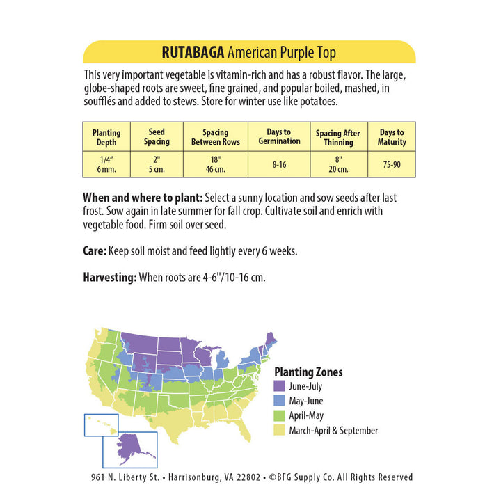 This very important vegetable is vitamin-rich and has a robust flavor. The large, globe-shaped roots are sweet, fine-grained, and popular boiled, mashed, in soufflés and added to stews. Store for winter use like potatoes.
