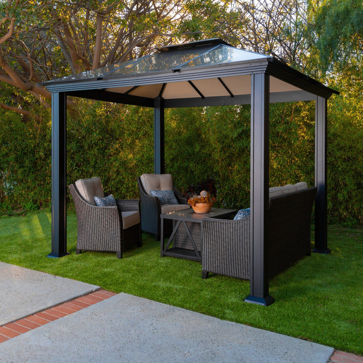 Get the luxury you deserve in your backyard with the Santa Monica Hard Top Gazebo. Enjoy the tranquility of being outdoors, rain or shine, with the full protection from the elements provided by the aluminum composite roof.