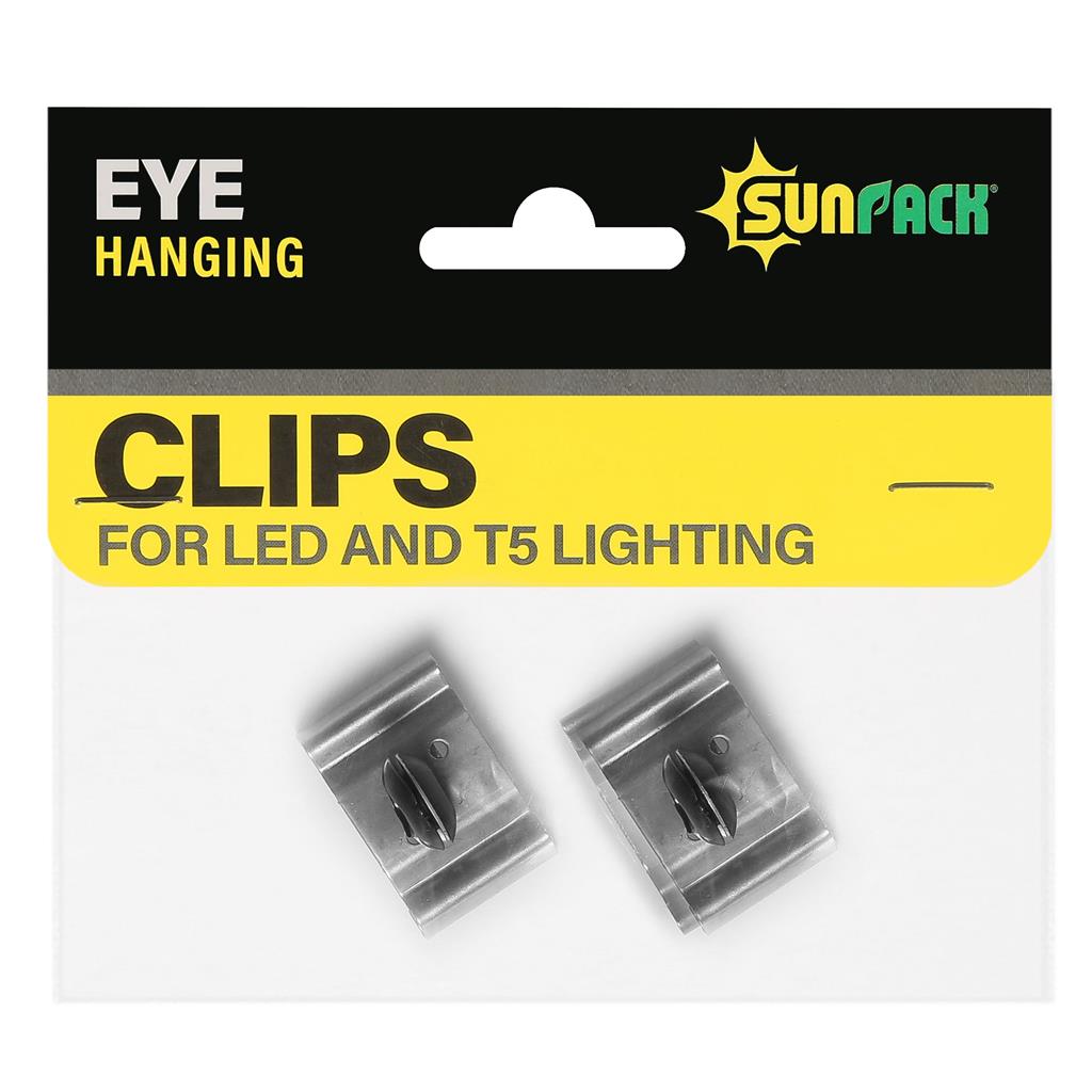 Suspend your SunPack T5 or LED lighting from overhead by using SunPack Eye Hanging Clips. The clip easily snaps into place on the light fixture, tightly gripping the light until you remove it. The eye lets you attach the lights to a SunPack stand, a chain or another fixture.