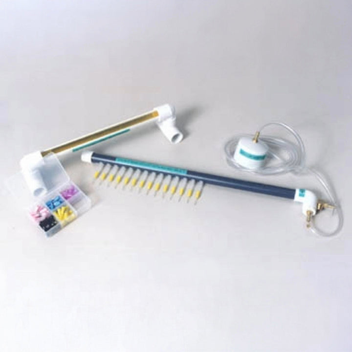 - Adapts to various seedling trays and cell packs - Wands are interchangeable and available for 10 types of plug trays and 17 types of cell packs, including special orders made with your spacing requirements (English or Metric). A Seed Bin is included; it comes in two sections that come apart for easy removal of any remaining seed. Other larger bin sizes are available. The GRO*MOR WAND SEEDER Tips are made of a polyethylene material to give good service. These tips are easily replaced when needed. If a blockage occurs in a tip, remove that tip form the wand and place it over one the openings of the exhaust muffler of the vacuum pump while it is running or use a low pressure air source. This will clear the blockage. Return the tip to the wand and continue seeding.